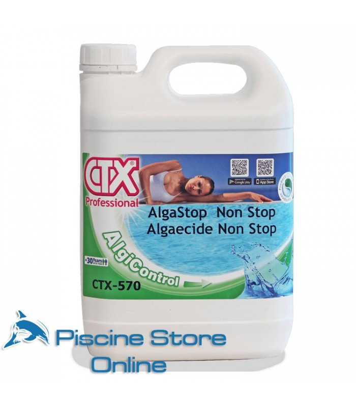 L'antialghe piscina CTX-570 svolge un'azione rapida, non producendo schiuma, è idonea soprattutto per le piscine che presentano giochi d'acqua come idromassaggi, lame d'acqua o nuoto controcorrente, è utilizzato per prevenire ed eliminare le alghe e svolge inoltre un'azione chiarificante e flocculente. Può essere utilizzato in piscine con filtri a sabbia o anche filtri a diatomee.