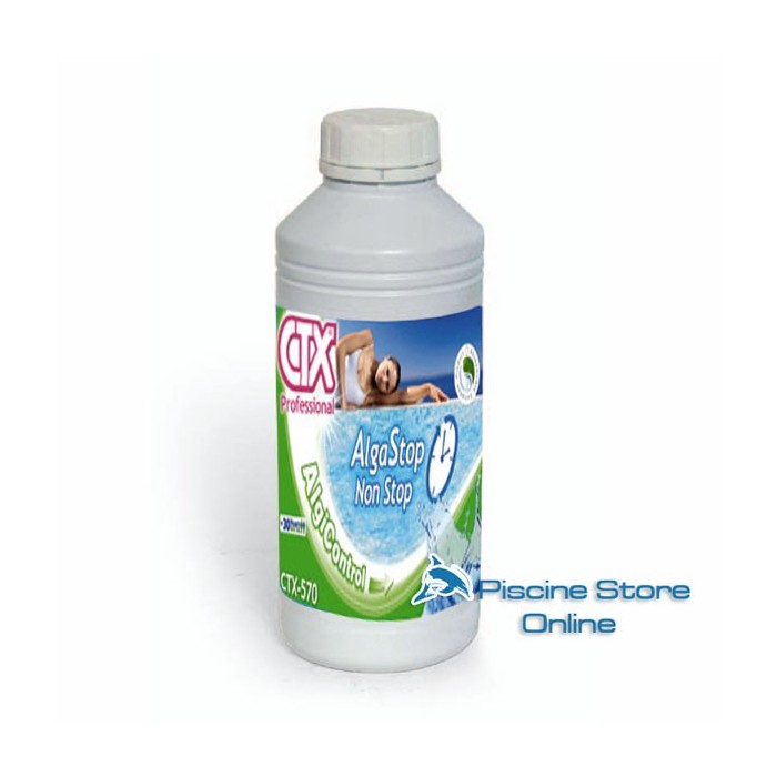 Antialghe piscina concentrato CTX-570 battericida concentrato non schiumogeno. Antialghe piscina a marca CTX. Disponibile nell confezioni da 1 a 10 lt.