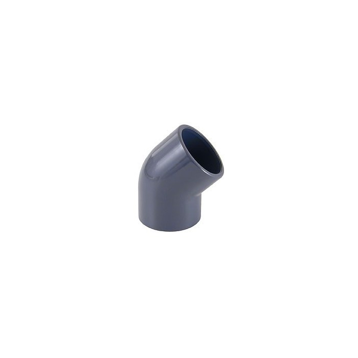 Gomito in PVC 45° per incollaggio, disponibili nei diametri: 32 - 50 - 63 - 75 - 90 - 110. PN 16